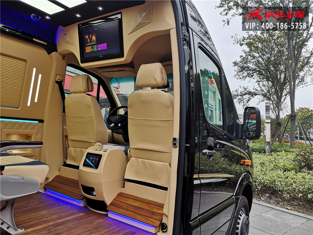 今天小编要介绍一款奔驰斯宾特个性化定制加长版商务房车,这款车型荷载人数12座,整车长6900mm,车高2800mm可以在车内站直身体,属于黄牌A1照可以开的范畴车型。