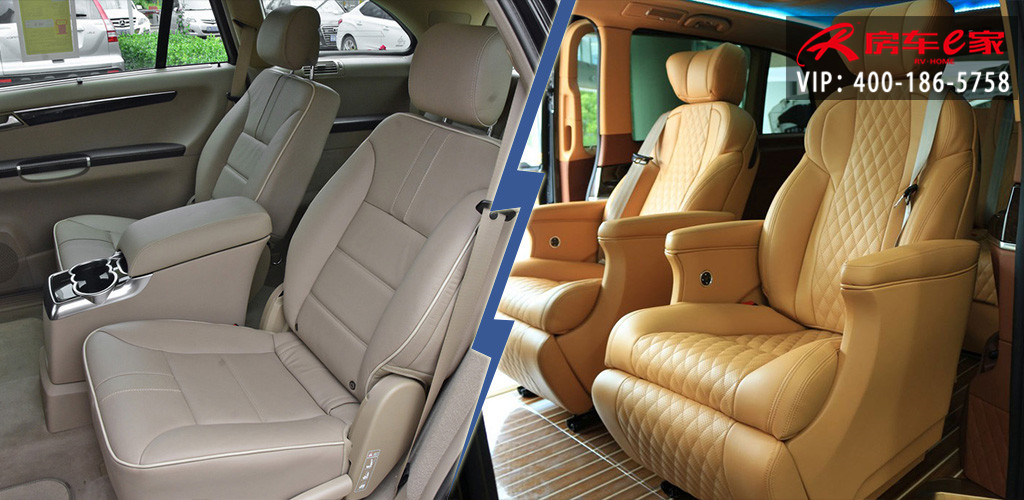 奔驰V级(升级款):荷载人数2+2+3,内带2独立航空按摩座椅、三联排座椅可180度放平变成沙发床、车载电视机、冰箱、游艇地板、办公小桌板、全车进口和进口面料包覆,高顶或平顶选配,隔断不隔断选配。