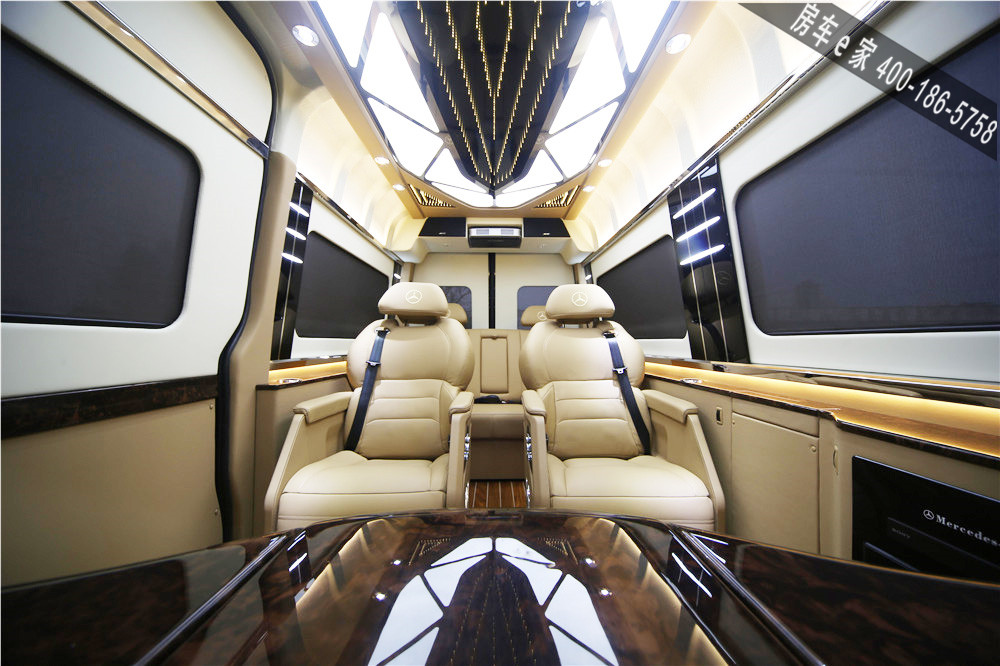 隔断的吧台有带两个吧台椅的,吧台椅既可以放脚休憩,又可以放置物品;有的是全吧台,全吧台可以放置更多的物品,如玻璃杯、热水壶、储物格、鞋柜等;有的带有电动小桌板,可以进行办公会议。第三排的连排座椅可以放平做沙发床,路途劳累,可在车内进行更好的休息。2018款豪华进口奔驰商务房车平顶斯宾特,多种款型现车预售中,恭迎品鉴!