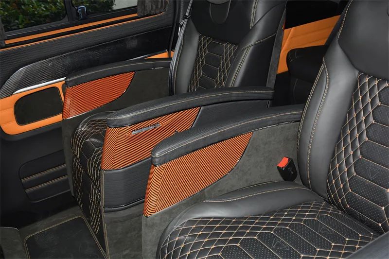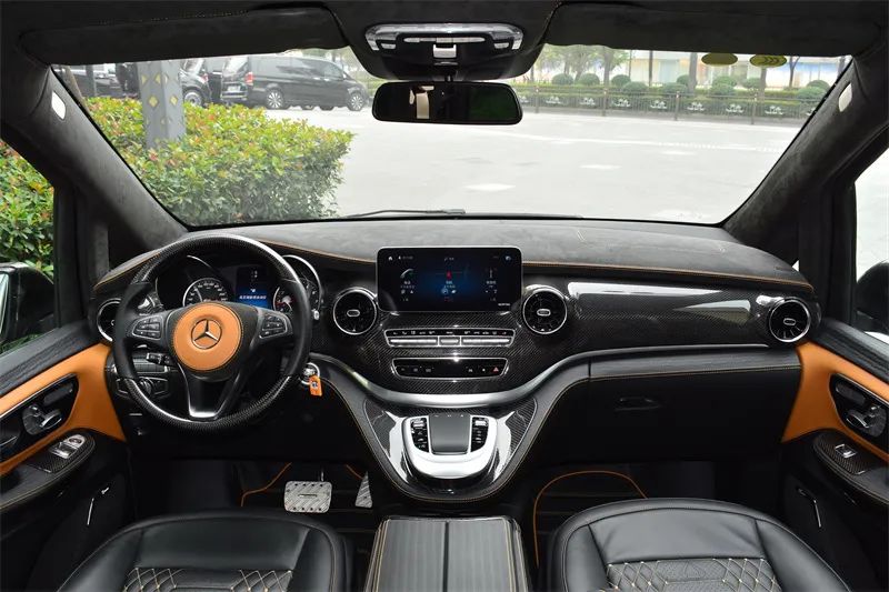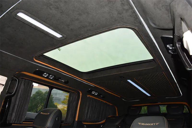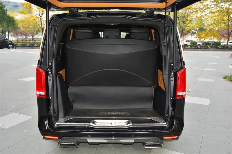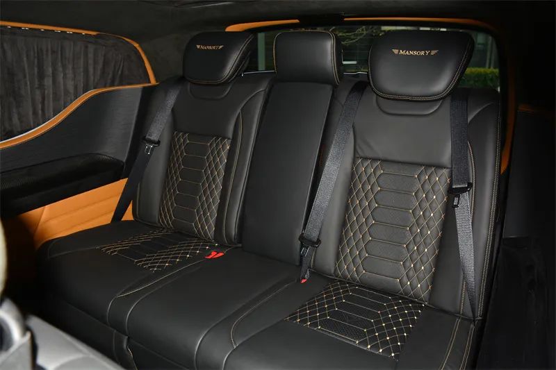 5400*1928*1920(mm)尺寸/3430(mm)轴距让MV600誉金不管远观还是近看都魄力十足,虽与埃尔法一样属于平顶,但实际观感却像高顶车型一样夯实庄肃!鹅卵石般光滑剔透的车身与平直流畅的腰线相辅相成,搭配T70金线碳纤打造的翼子板、侧裙、扰流、门把、后视镜盖以及带MANSORY官方飞翼悬浮盖的19吋N.80钻石银运动轮毂,一种难以言表的精奢雅致氛围袭来使人内心瞬间沉淀。